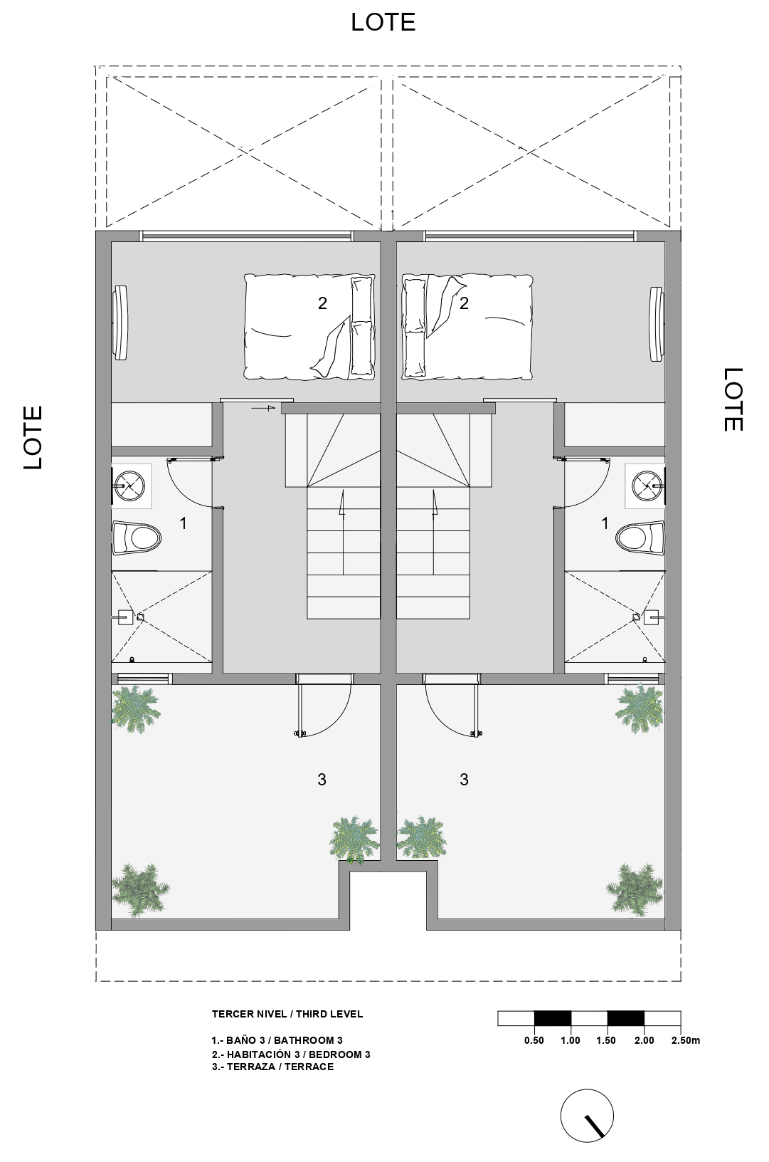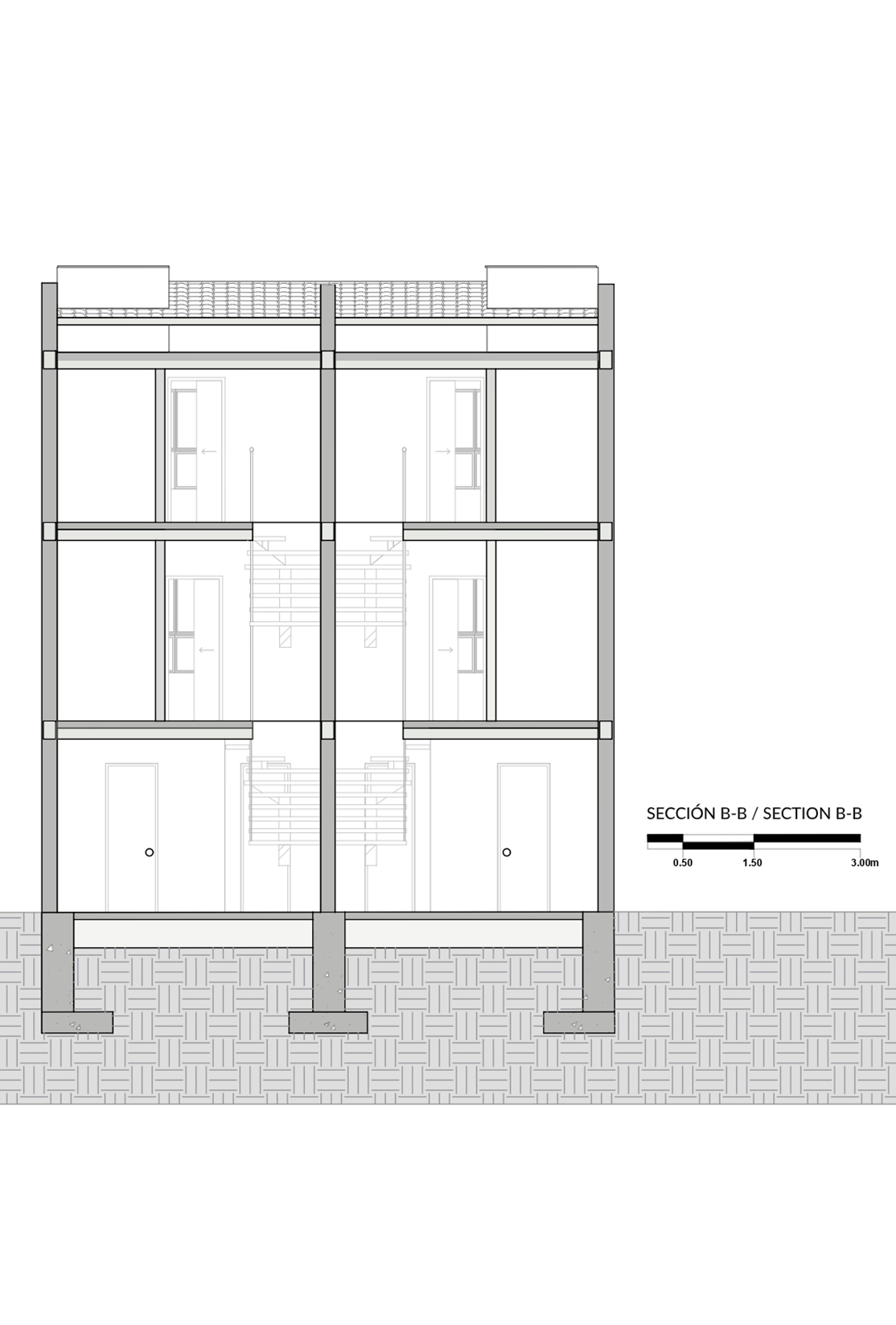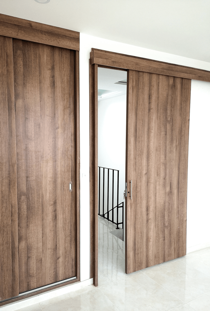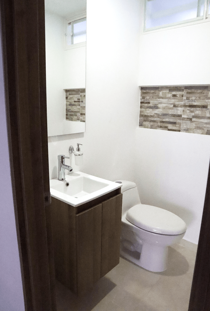 Las habitaciones cuentan con puertas corredizas para dar un mayor uso al espacio, además de esto la vivienda está dotada con una terraza, la cual mejora la experiencia del usuario, al representar un espacio abierto dentro de una vivienda con poca área.