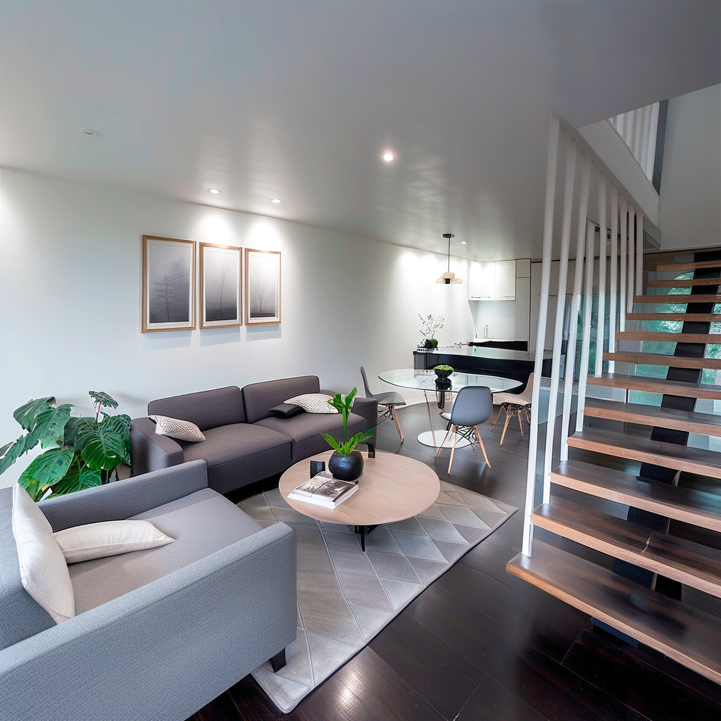 El Vergel es un proyecto de vivienda bifamiliar. Para el diseño interior se escogieron acabados con texturas en madera que contrastan con los tonos blancos y crema de los muros y el piso, y los cuales permiten que el espacio reducido se perciba más amplio.